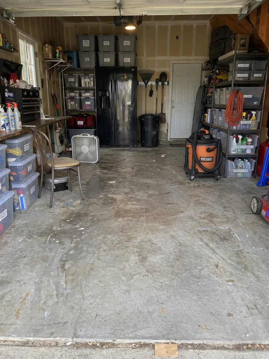 A real garage analyzed with our AI organization tool. Below: the before photo, the prioritized plan our AI created (specific products, sized to the space, with reasoning), and an AI-rendered preview of the same garage organized. Want one of these for your space? It takes a photo and 30 seconds.